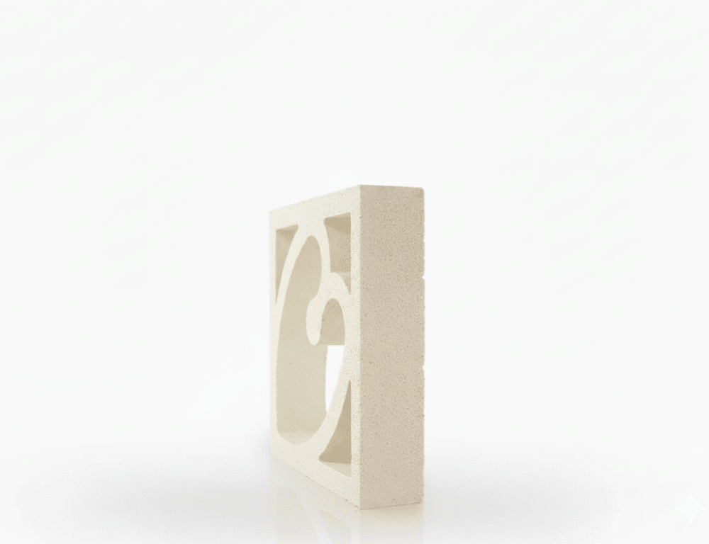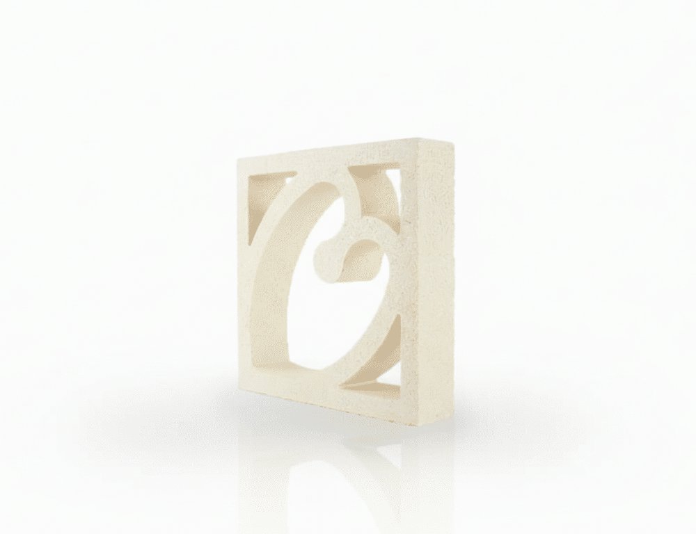 La celosía Corazón es de hormigón tipo piedra prensada. Su textura es rugosa y se aprecia perfectamente la arena con la que está fabricada.