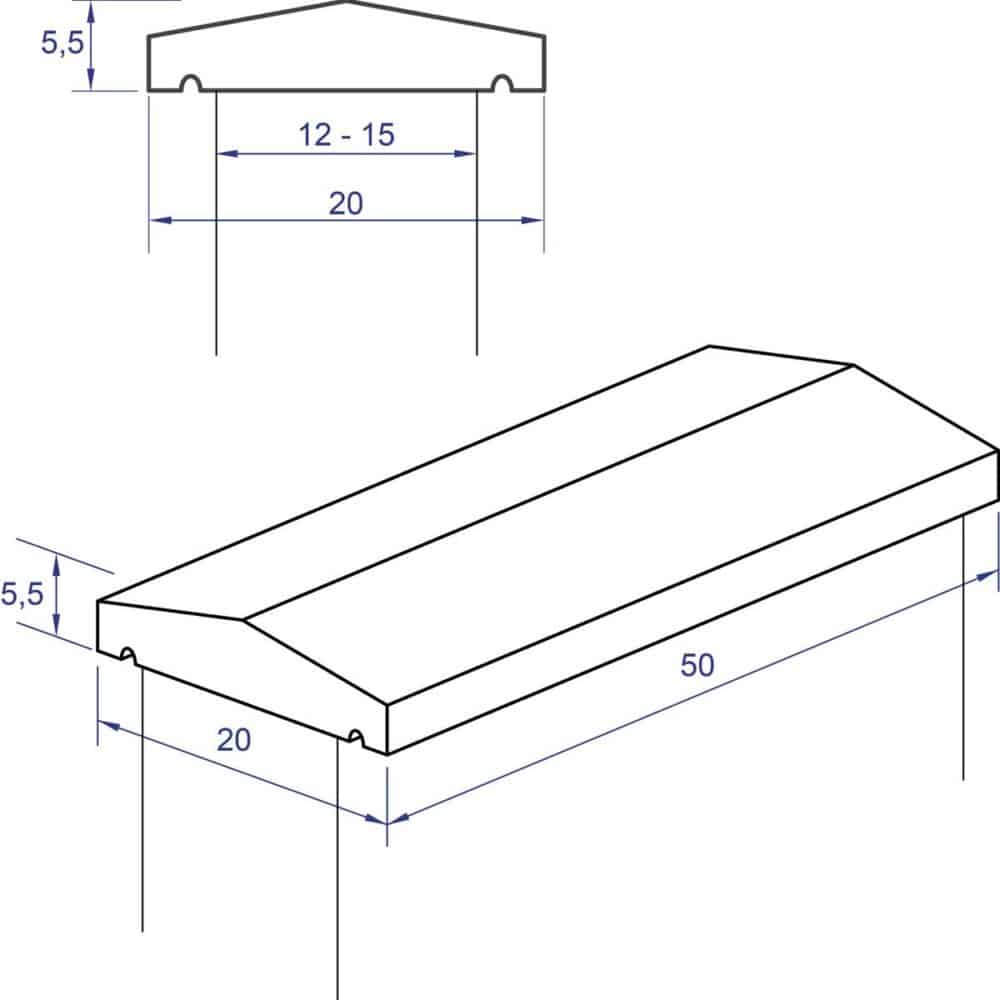 Con un formato de 50x20x5,5 cm, el Cubremuros 2 aguas Levantina Blanco se adapta fácilmente a diversos diseños y tamaños de muros, proporcionando una cobertura uniforme y precisa.